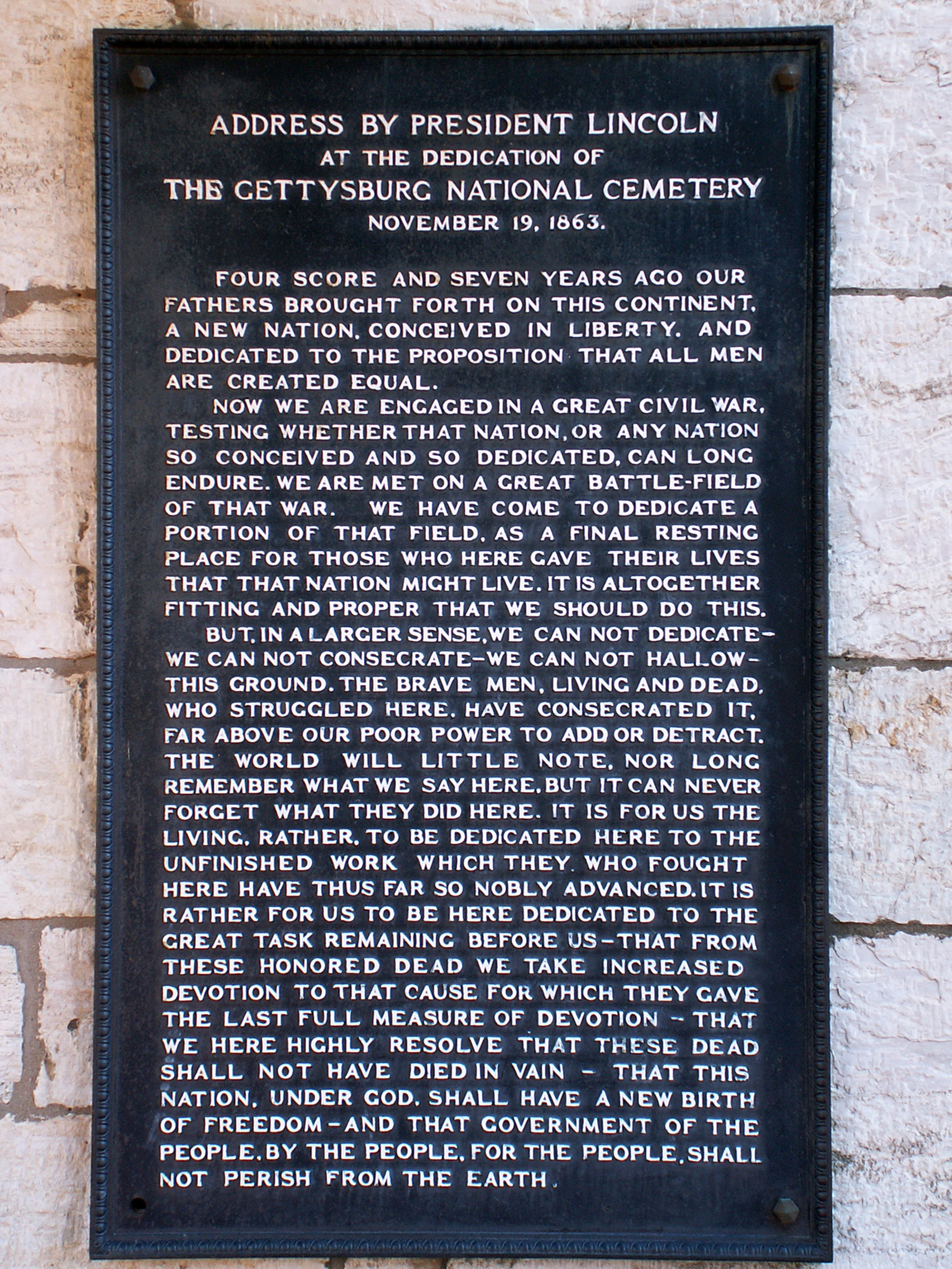 On this date of November 19, 1863, the famous Gettysburg Address was given by Abraham Lincoln for the dedication of the cemetery there. Though not generally well-received at the time, it remains probably the most famous speech in American history.