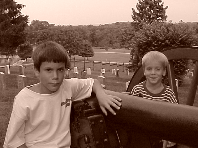 The picture is of the two youngest of my five boys – taken in the cemetery in July of 2000. These guys are both in college now!