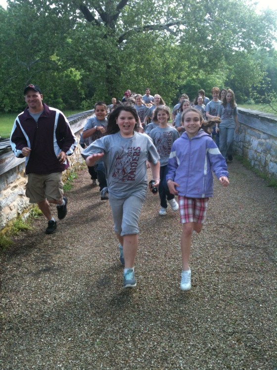 I hosted a battlefield visit today with a great group of 6th grade kids from Uniontown, PA. (That seems like the name of a very appropriate place to be from when studying the Civil War – although I believe the name had no more to do with the Civil War than did Secessionville, SC on James Island – where the founders had earlier seceded from the older summer village of Centerville … but I digress … though I will also say that Uniontown was a very active place of the Underground Railroad, is on the National Pike, and is near Fort Necessity … and of necessity I need to not digress further.)