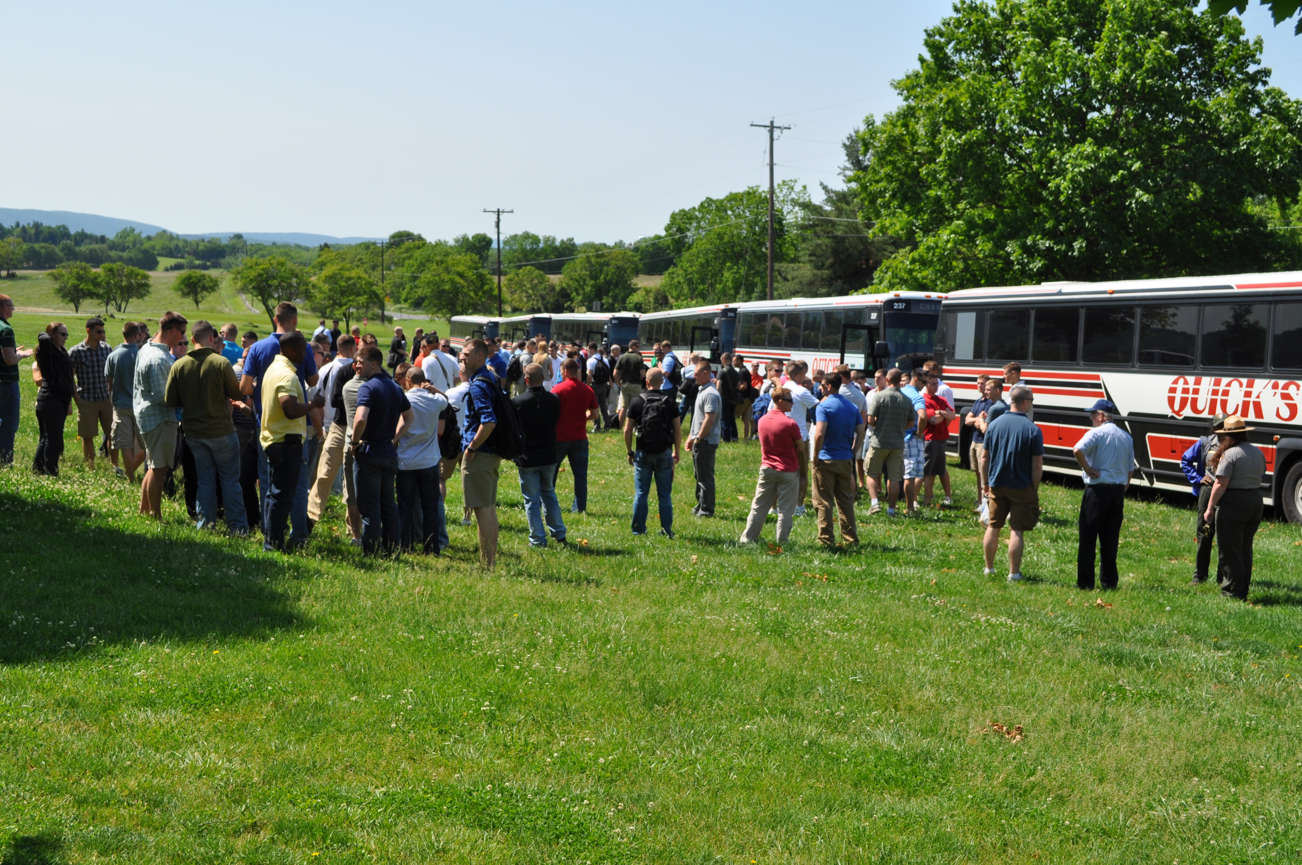 Today was one of the most interesting days I’ve had at Antietam. A total of 300 Marine Corps officers came on six buses. So six of us from the Antietam Battlefield Guides organization led a “staff ride” sort of examination of the battle. These young adults – most of them rather recent college grads – are all second lieutenants from the Marine Officers basic course at Quantico, Virginia.