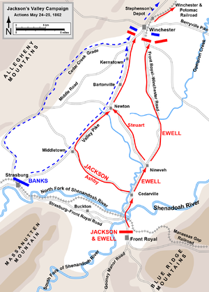 On this date, May 25th of 1862, Stonewall Jackson accomplished a major victory in his Peninsula Campaign by routing the Union forces of General Banks in the First Battle of Winchester, VA.
