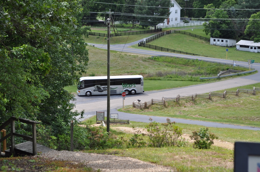 BUT … today … I was at the “Coaling” on the Port Republic field – which is a high ground position originally held by the Union. It is a short walk up a steep incline to a marker near the top. As I was sitting there enjoying the vista, up pulls a tour bus. (Understand – this is essentially in the middle of nowhere!) By the time I walked down the hill, the bus had emptied out, and there in the middle of the group, gesturing with his walking stick in that inimitable gravely voice was Ed Bearrs!!! I had to take a picture of it, just to prove to the other guides at Antietam that I was not making up the story…. so here you go:
