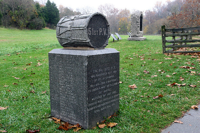 As a part of my series of posts on the aftermath of the Battle of Antietam, here I offer an excerpt from the well-written history of the 51st PA Volunteer Infantry. Of course, all of those familiar with the details of the Battle know that this was one of the two regiments that successfully captured the stone crossing later to be known as the Burnside Bridge.