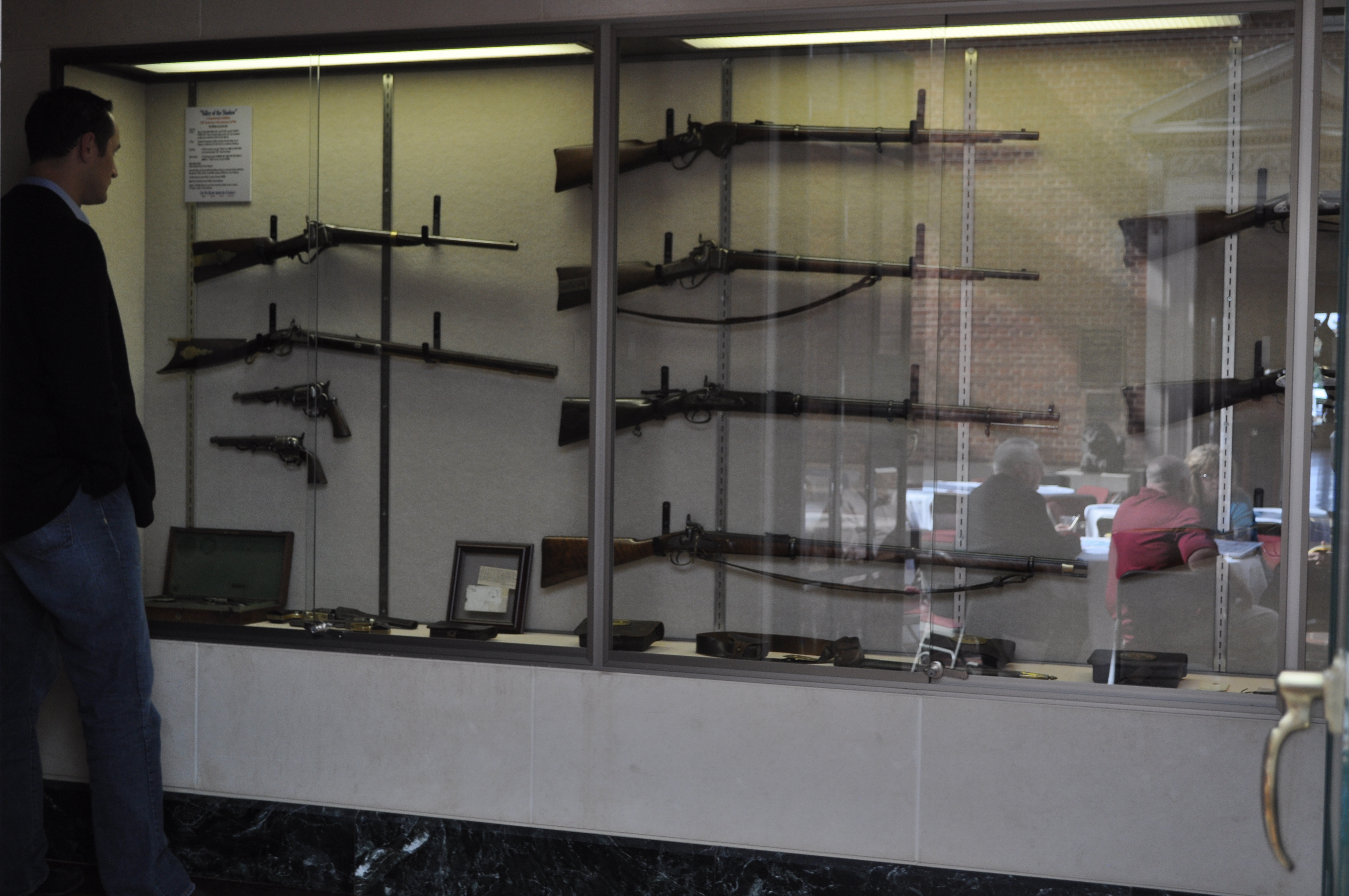 My Rotary Club this week had its luncheon and program in the atrium of the museum, affording our membership the opportunity to be briefed upon and view this special display entitled “In the Valley of the Shadow.” Items speak especially to the variety of issues and circumstances of particular interest to our area – many having a connection to the local community – as well as the broader Civil War. The idea for this exhibit is to have the presentation run roughly for the period of time from the sesquicentennials of Antietam through Gettysburg.